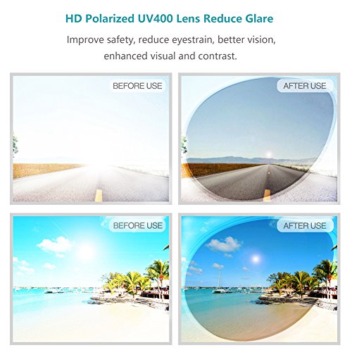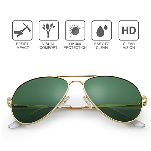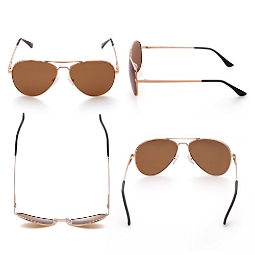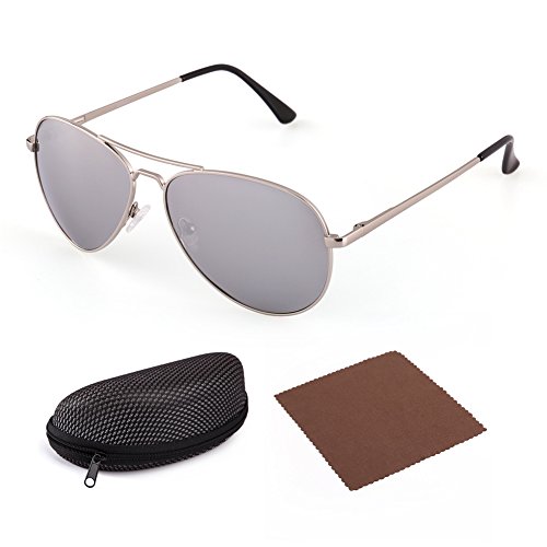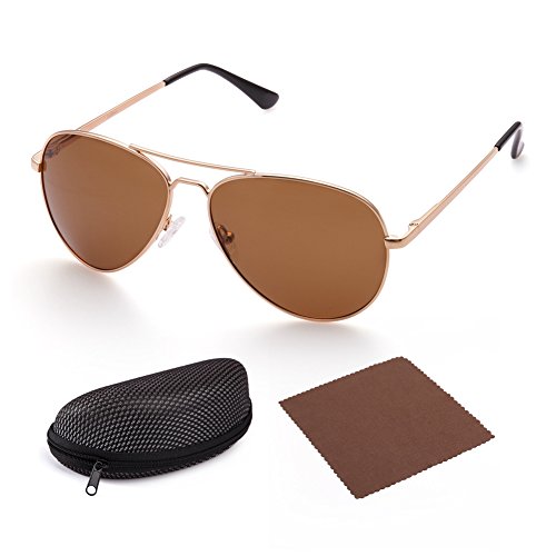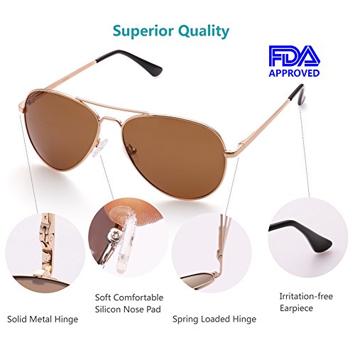 -. Feature : Metal frame and polarized composite lenses; Irritation-free material; FDA approved / Classic Aviator design; reduces glare and unwanted reflections / 100% UV400 protective sunglasses blocks harmful UVA and UVB rays / Adjustable nose pads; semi-hard sunglasses case included / Lens width: 58mm; height: 48mm; bridge:13mm; frame:125mm