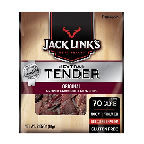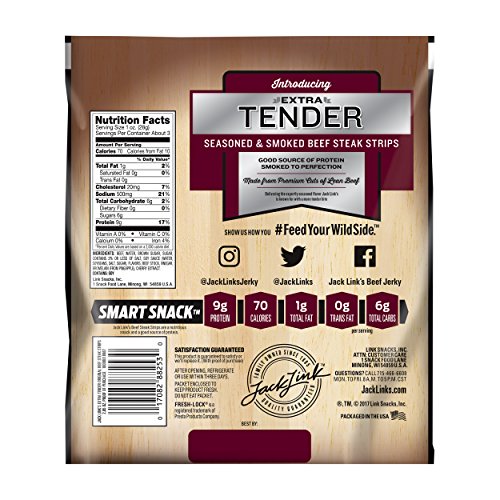 ReleaseDate : 2017-04-16 Studio : Link Snacks Publisher : Link Snacks Binding : Grocery Product Description This pack contains one 2.85-ounce bag of extra-tender, savory, smoky steak strips, made to satisfy the strongest meat-seeking urges. It's a great snack choice that contains no added MSG. Plus, extra-tender steak strips have a tender, juicy texture with all the flavor of classic Jack Link's beef jerky. Every great adventure needs great snacks to keep it going, and that's why you need Jack Link's meat snacks. The next time you reach for a snack, don't just feed your hunger, feed your wild side. Jack Link’s is the #1 selling beef jerky brand. 0