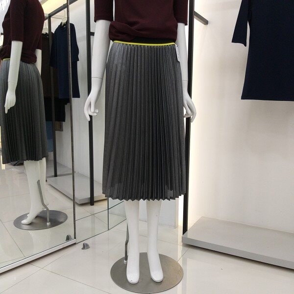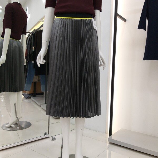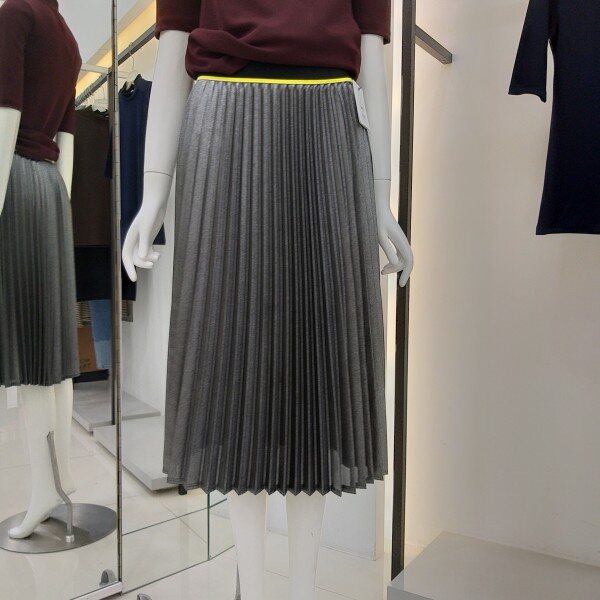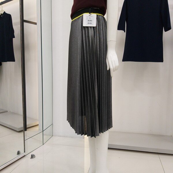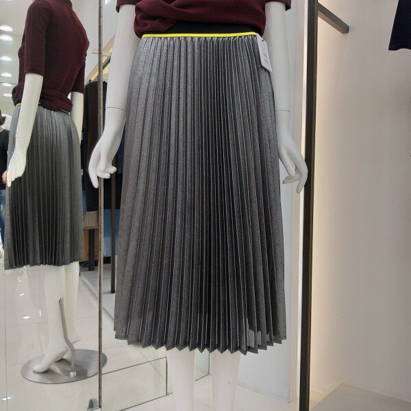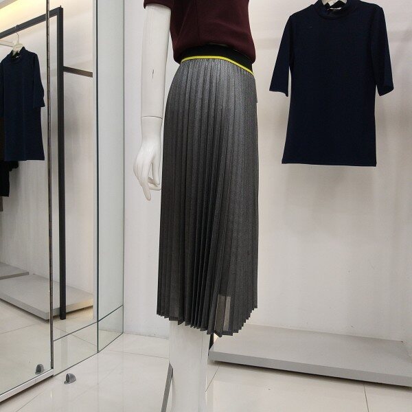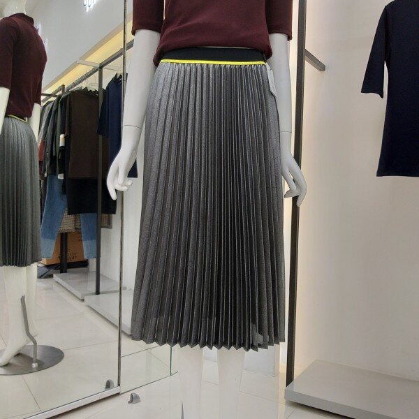 티렌 펄느낌이 나는 실버색상 플리츠스커트입니다 모든옷에코디하기좋은 간절기 스커트입니다 허리밴딩단면 31cm 총기장 71cm