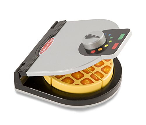 - Feature : Includes waffle iron, sliceable waffle, 8 toppings, 4 portions of syrup, sliceable butter, and wooden knife / Sturdy wooden construction / Working dial turns for realistic play / Helps teach basic shape recognition, sequencing, and beginning math skills / Promotes hand-eye coordination, fine motor skills, and creative expression