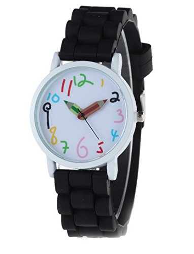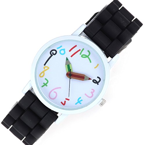 -. Feature : Large dial, clear shilly numbers, pencil pointer, candy-colored strap / Glass mirror, screw-down crown, stainless steel clasp / Mutiple corlors for your choice, fashionable sports watch for kid's school gift / Electric quartz movement / Life water resistant: withstands rain and splashes of water, but not wear it to take shower, swim, dive, etc