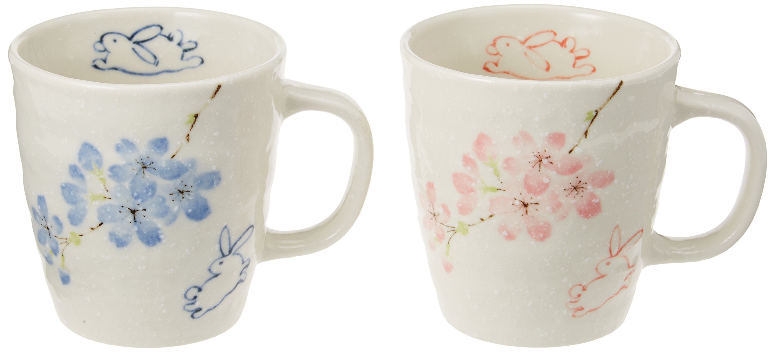 Hana Rabbit Pink & Blue pair mug set pottery Mino