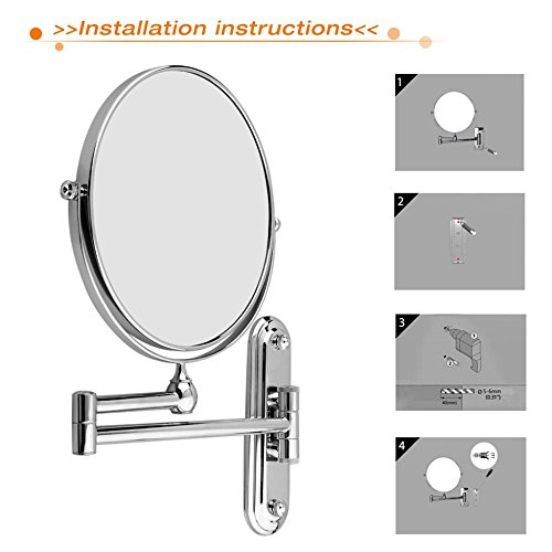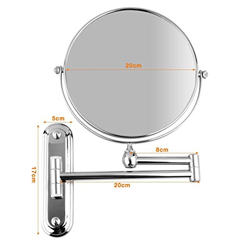 Item Type:Makeup Mirror Material:Stainless Steel Item :Magnification Mirror For Bathroom Shape:Round Material:Brass and high polished Chrome Color:silver Weight: 0.9kg Mirror diameter: 8 inches (20cm) The arm can be extended up to 12 inches (30cm). Package Content: 1x wall mounted mirror 1x pack of fixing screws