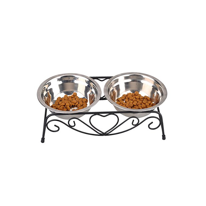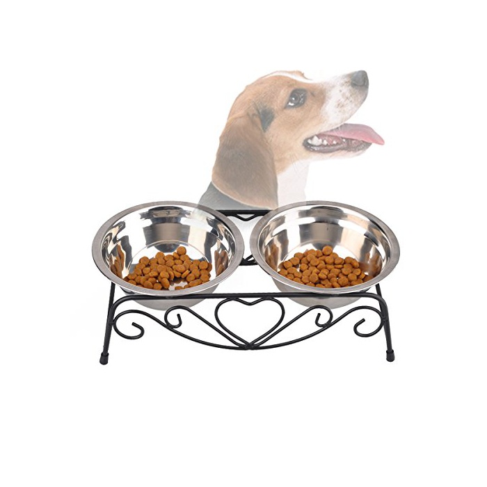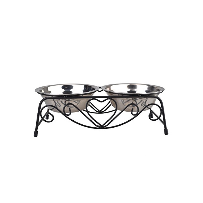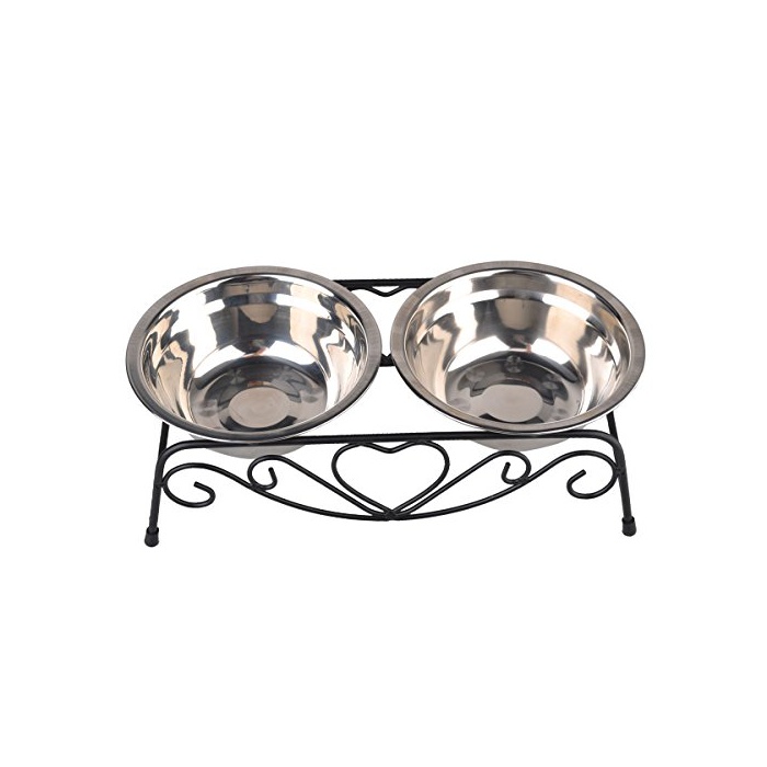 DHYStore 애완동물 볼 식기명 개와 고양이용이 스테인레스제 미끄럼방지 더블 스탠드와 볼 부착