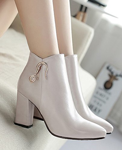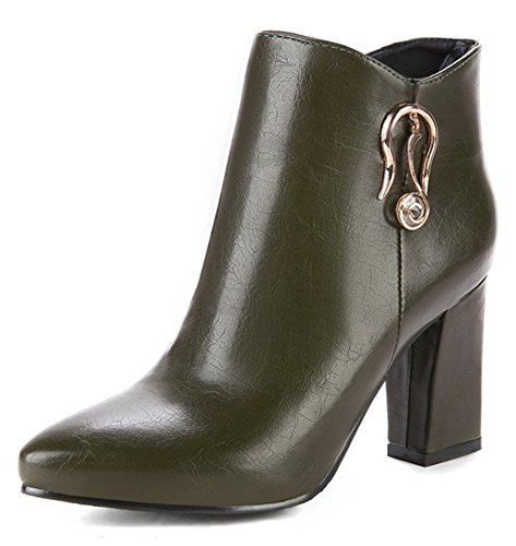 Binding : Apparel Product Description The fall comes, and it is time for elegant women to wear various boots. A pair of suitable boots can add much charm to you. Here is a pair of pretty booties for you. They adopt pointy toe design, which can embellish your foot type better. The chunky high heels make them very comfortable to wear. The zipper closure is so convenient, stylish and artistic. The outsoles are made of rubber, wearproof and non-skid. They have no many decorations, which conveys an idea of simpleness. In addition, they are easy matching. Welcome to choose and buy! Aisun is the legal brand, registered in the United States Patent and Trademark Office. All rights reserved. 0
