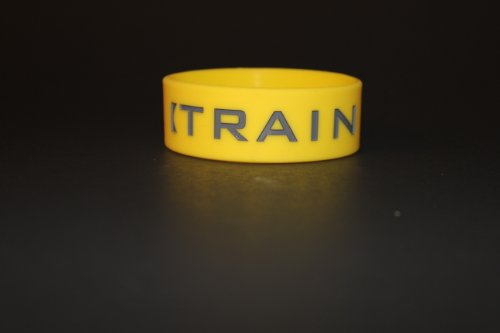 -. Title : "Train Hard" Silicone 1" Inch Wristband - Yellow/Grey