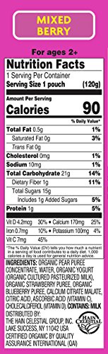 -.Convenient, squeezable, reseal able, non-BPA package; serve within 24 hours of opening / Contains 4 pouches each of Strawberry & Banana, Pear & Mango and Mixed Berry