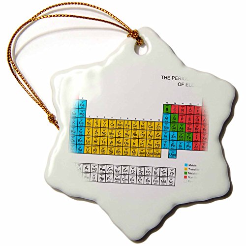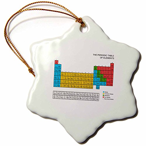 3dRose orn_76644_1 Periodic Table-Academic Educational Gift for Science Fans, Snowflake Ornament, Porcelain, 3-Inch