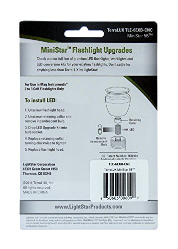 Studio : TerraLUX Publisher : TerraLUX Binding : Electronics Product Description TerraLUX MiniStar5 140 Lumens Extreme LED Replacement Bulb for 2-3 CD Cell MagLites has a white LED light that never burns out. It has an extended battery life that lasts 3 times longer than incandescent bulbs and has ultra focus for long distances which makes it brighter than the original incandescent bulbs 0