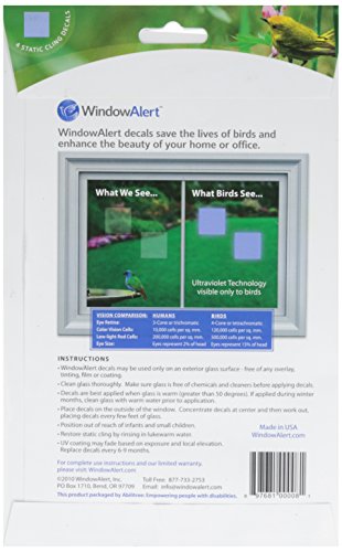-. Feature : Helps reduce bird/window accidents. / Brilliantly reflects ultraviolet sunlight. / Contains 4 decals per package.
