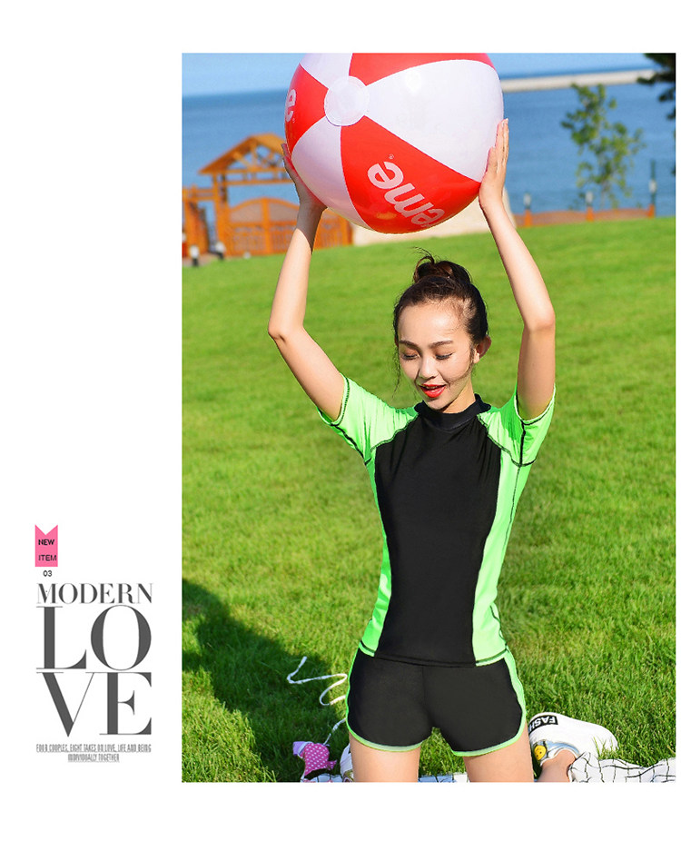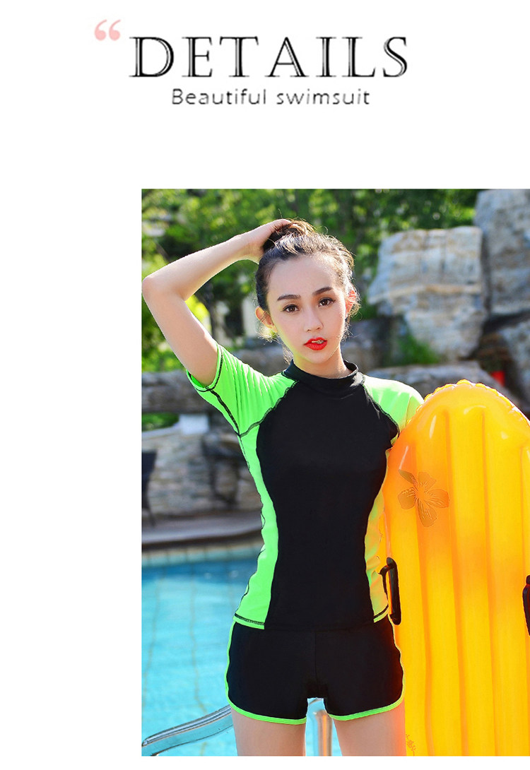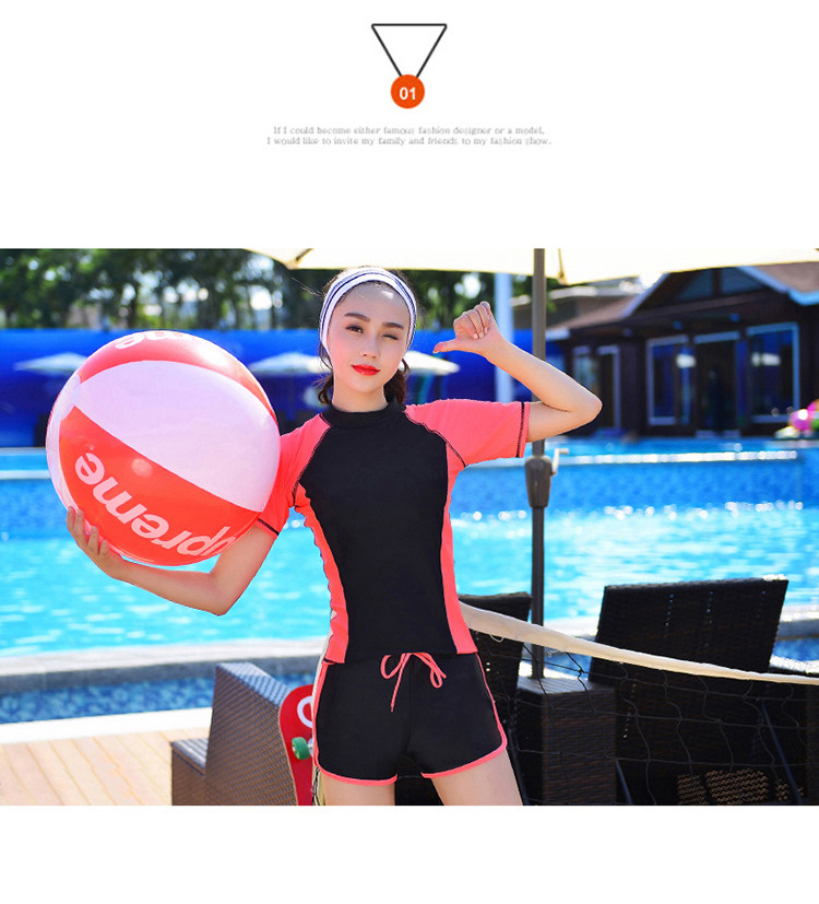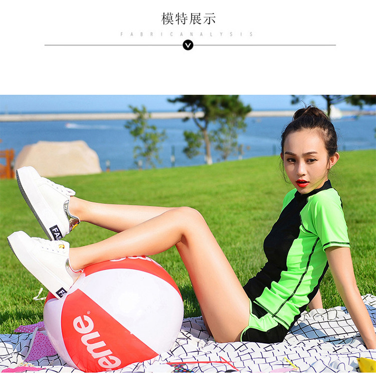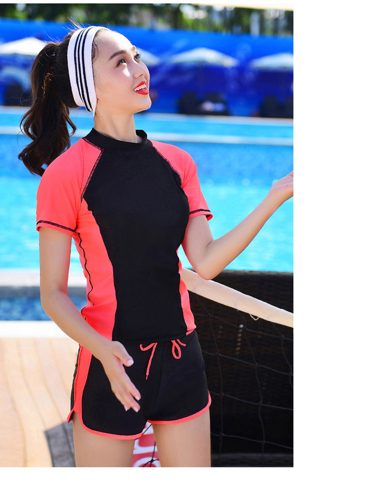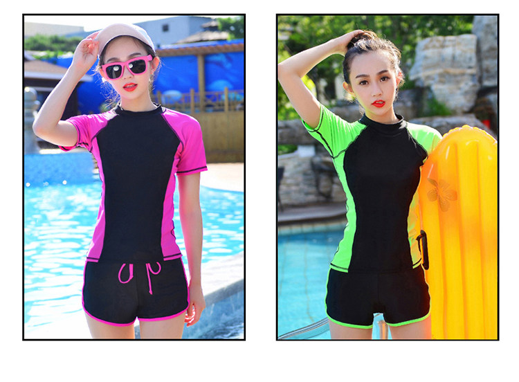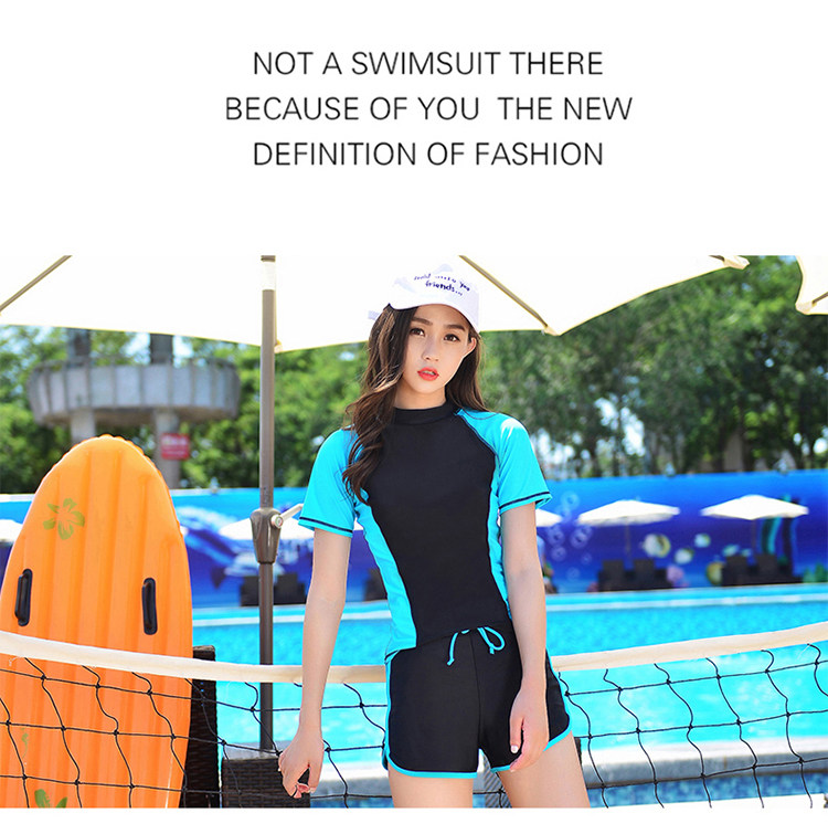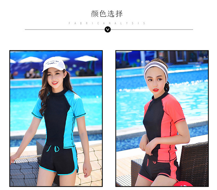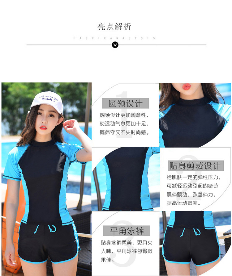 分体泳衣女平角短袖运动泳衣遮肚显瘦保守大码泳衣防晒泡温泉泳衣