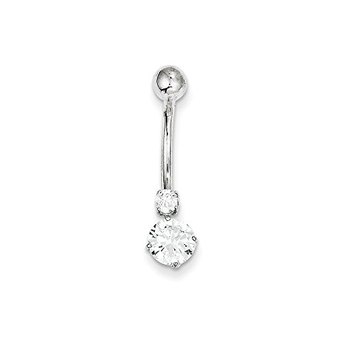 Product DescriptionSolid 10k White Gold with 3 And 6mm CZ Cubic Zirconia Belly Dangle0