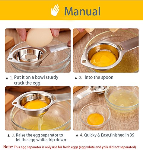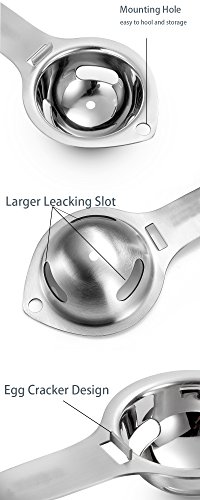 NON-STICK AND EASY TO CLEAN -- Make of food grade stainless steel,dishwasher safe,our metal egg white separator is safer than plastic egg separators.