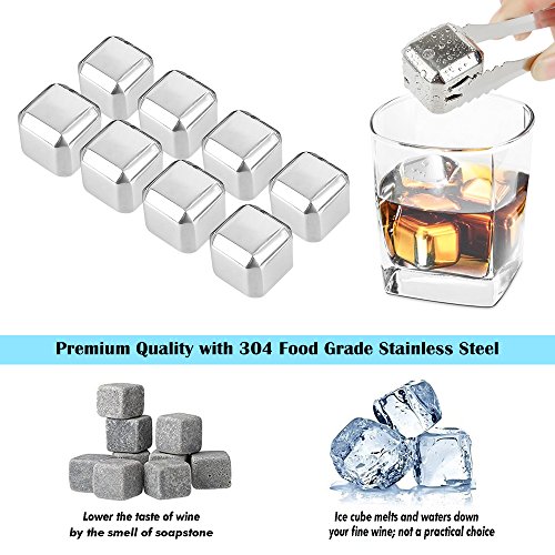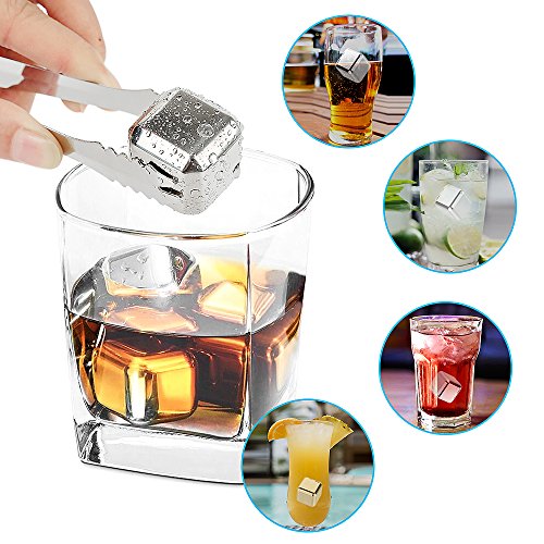 Product Description Features: - 8 sets of premium whiskey stones are made of 304 food grade stainless steel, safe to use - No dilution for your white wine, whiskey or other drinks unlike the traditional ice cubes - Perfect as New Years, Christmas, Valentine's Day, Wedding, Father's Day, Birthday Gift