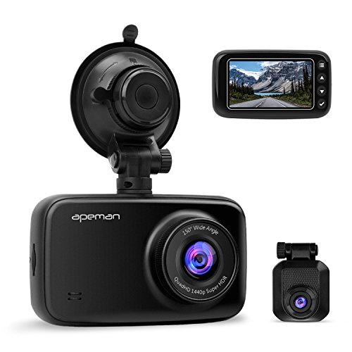 APEMAN Dash Cam FHD 1440p & 1080p Dual Dash Camera with IR Sensor, 6G Lens, G-Sensor, WDR , Super Night Vision, Loop Recording, Parking Monitoring etc