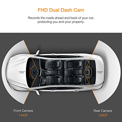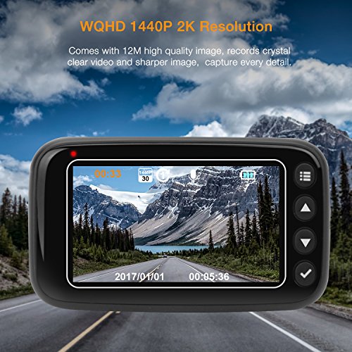 - 【1440P & 1080P Dual Lens】Both front camera and rear view cam come with a 1920 X 1080P video resolution and 12M photo image, helps to capture every moment from both front and back of your car, never miss any license plate. With rear camera disconnected, the front cam can provide you a crystal clear WQHD 1440P at 30FPS video of your car surroundings.