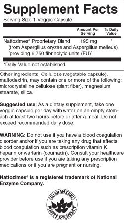 Boost your cardiovascular system with this remarkable supplement developed by the National Enzyme Company. Swanson Nattozimes are an all-natural enzyme supplement inspired by the popular Japanese health food, natto. For centuries, this product of boiled, fermented soybeans has been treasured by the Japanese as health promoting for the heart and circulation. Nattozimes, which are derived from two strains of fungi, can also benefit cardiovascular health. They promote healthy blood flow in the cardiovascular system.Feature