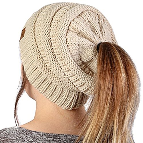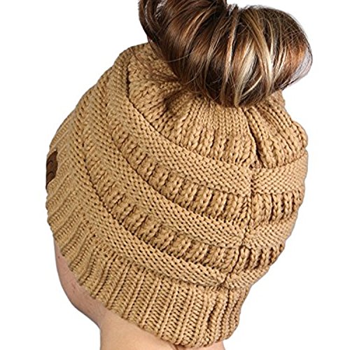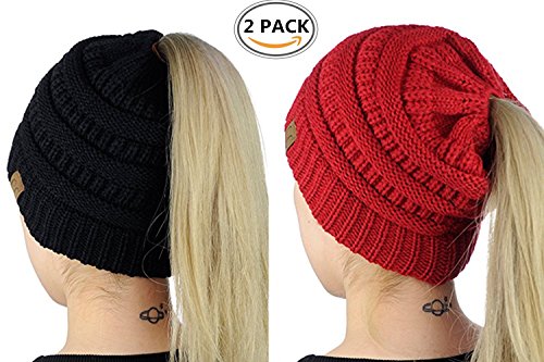 | (Beanie Ponytail Hat)/Accessories/Hats/DIRECT FROM USA/ALIPAPA BeanieTail Womens Ponytail Messy Bun Beanie Solid Ribbed Hat Cap Of 2 Pack |