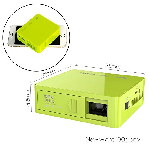 Small and light portable to carry,130g only,Product Dimensions: 78x71x24.5mm,you can put the projector into pocket.