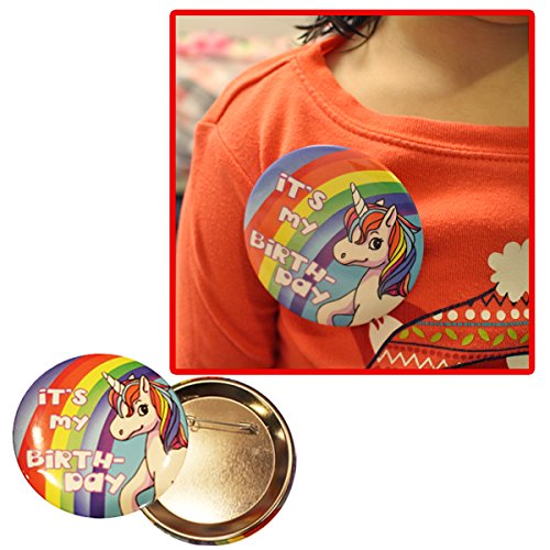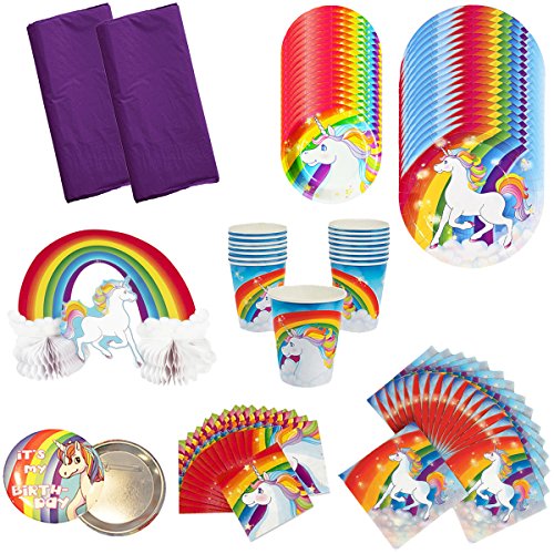 -. Feature : This cute party supplies tableware pack provides great value in one convenient package. / Disposable tableware serves 16 for a girl's birthday party or special event! / Dinner plates are 9", dessert plates are 7", cups are 9 oz., large napkins are 13", small napkins are 10", tablecovers are 54" x 108" and one unicorn centerpiece (simple assemply required). / Bring a dash of magic to your birthday party or special event with this majestic unicorn set. / Bonus our uniquely designed special " it's my birthday" pin for the birthday child included!