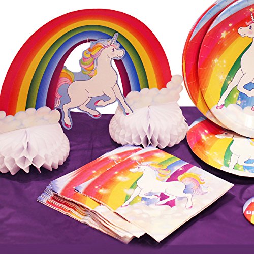 -. Title : Rainbow Unicorn Birthday Party Supplies Pack Bundle Kit Includes Dinner Plates, Dessert Plates, Cups, Large and Small Napkins, Table covers and Centerpiece - Serves 16 People