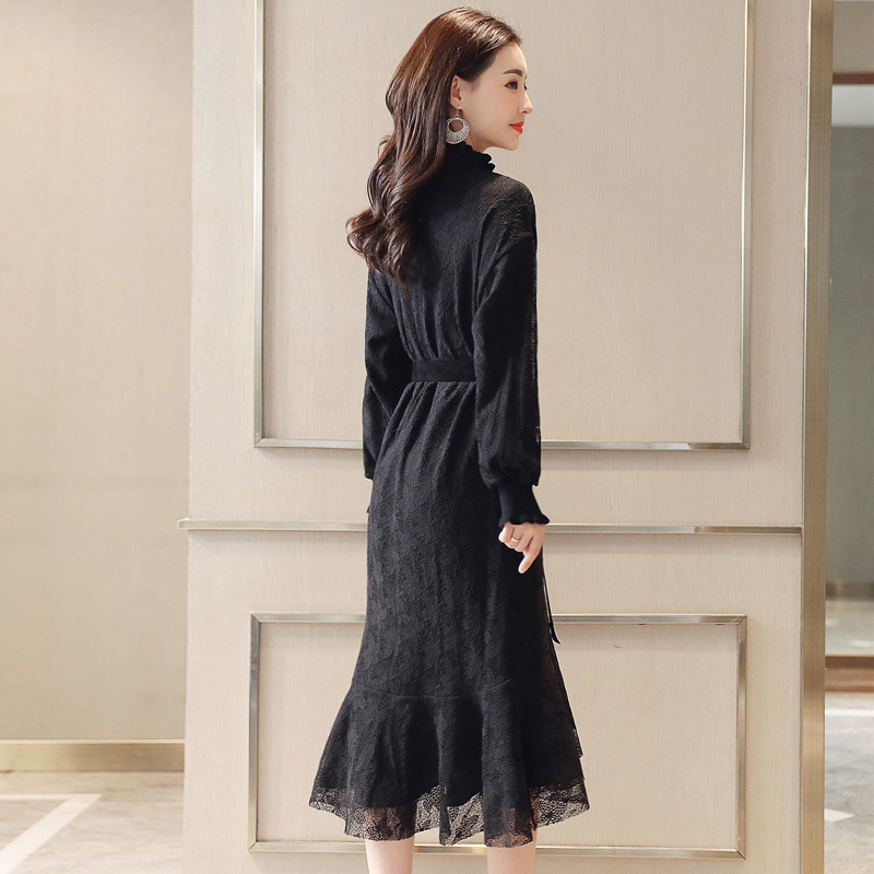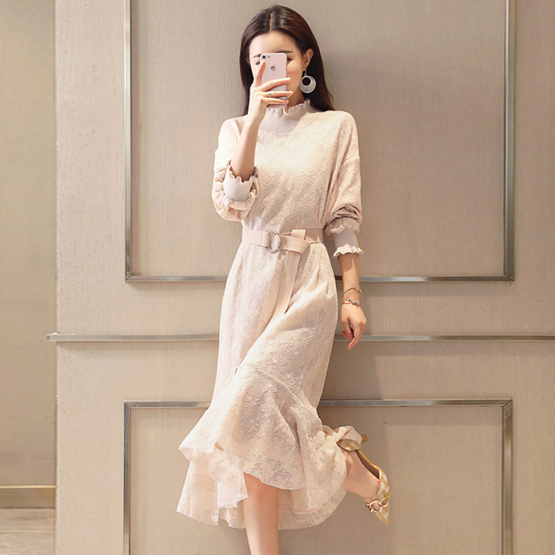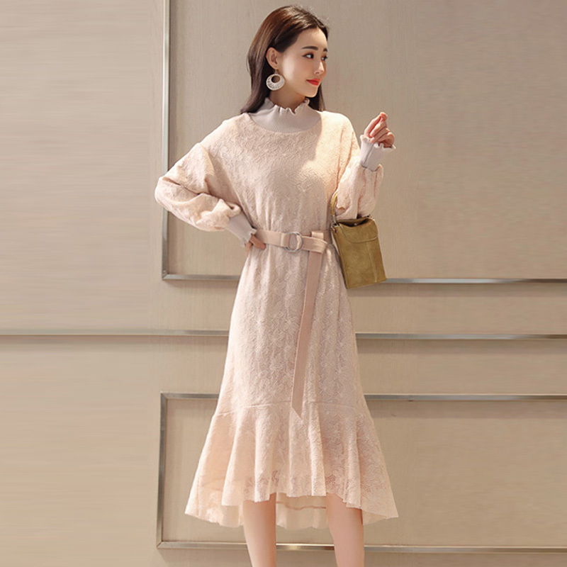 ワンピース ワンピ 長袖 上品 総レース 花柄 ひざ丈 結婚式 二次会 パーティー ドレス