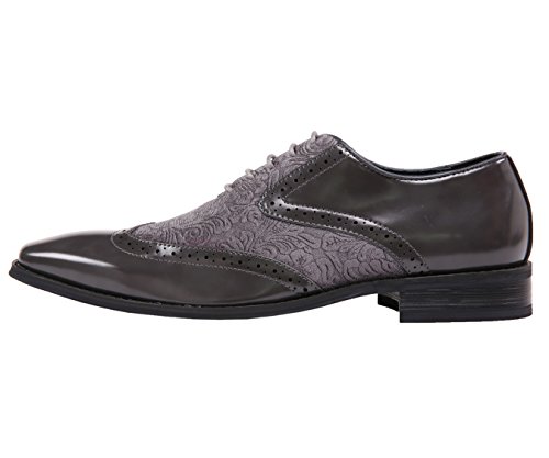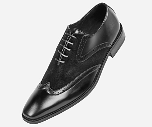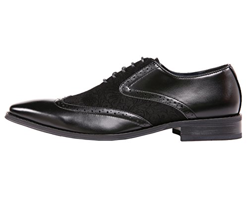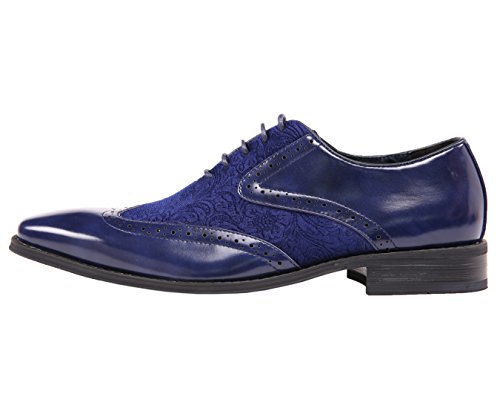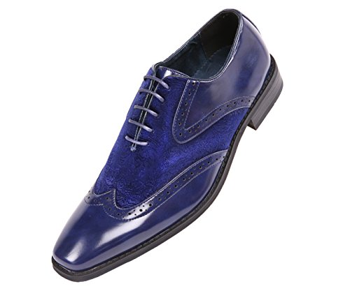 Binding : Apparel Product Description A modern take on a classic wingtip pattern, these velvet and smooth dress shoes are sure to be noticed. Soft manmade velvet has a subtle floral print, taking these timeless wingtips from basic to bold. Pair with a suit ensemble to create a complete, statement-making look, or try these oxfords with a pair of jeans, to elevate your whole outfit. A low block heel makes these shoes as comfortable as they are stylish-they're perfect to wear again and again.These lace-up dress shoes should run true to size, so select your normal size when ordering. Their comfortable soft construction makes them easy to break in and wear right out of the box. This sought-after wingtip style is also available in Black, Grey and Navy Blue so you can easily coordinate with all your favorite looks. Add this one-of-a-kind silhouette to your closet, and let the compliments roll in. 0