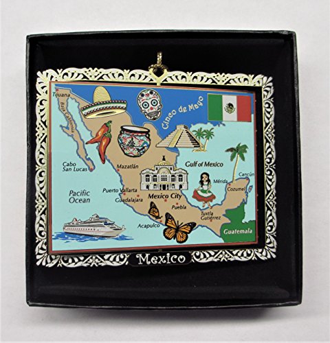 Mexico Landmarks Colored Brass Ornament