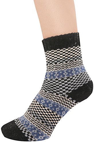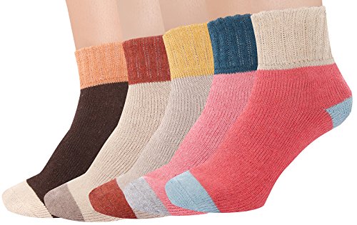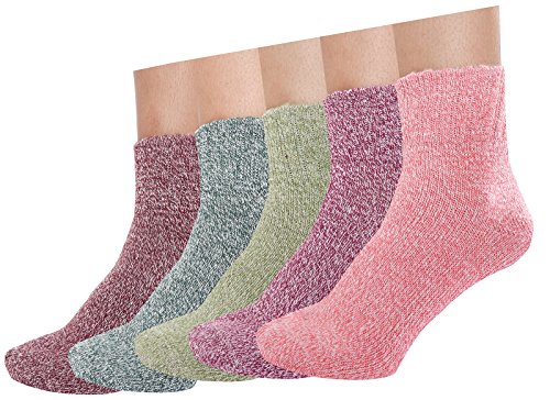 -. Binding : Apparel -. Brand : Landiterra -. Department : womens -. Feature : Materials:75% Cotton 20%Polyester 5%Rayon / Premium Cotton keeps your feet dry and comfortable all day long! These are extremely breathable socks. / They do have a grip on the back so they don't slip down. / Suitable for many occasions - Casual, office, Home, Sports, etc. / Package: 6 Pairs Women No Show Liner Socks. -. Model : Womens Wool Socks1 -. ProductGroup : Apparel -. ProductTypeName : SOCKSHOSIERY -. Title : Landiterra Women's Thick Knit Warm Socks Comfort Casual Wool Crew Winter Sock Pack of 5