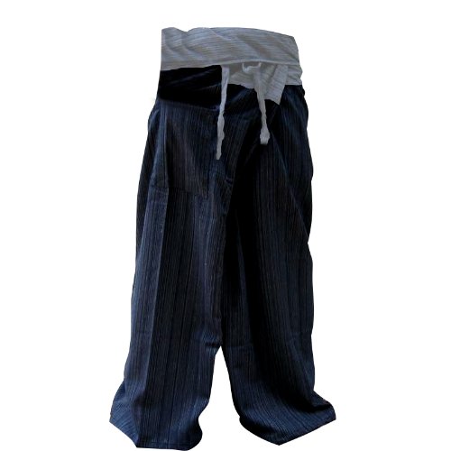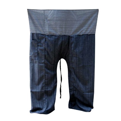 2 Tone Thai Fisherman Pants Yoga Trousers Free Size Plus Size Cotton Dark Blue and Drill Striped Gray By Hugdethailand