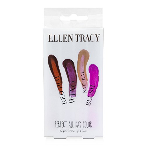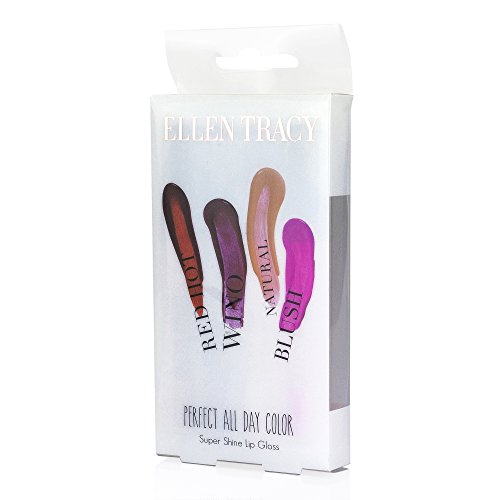 Ellen Tracy "Perfect All Day" Super Shine Lip Gloss, Red Hot, Wino, Natural, and Blush Colors (4 Pack)