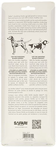 Our Safari Dual-Sided Dog Shedding Blade is designed to remove loose hair and leave your dog with a clean, healthy coat. The shedding blade can be used with the handles together or separated. With handles together, stroke the dog from head to tail, covering small areas at a time. With handles separated, stroke dog from head to tail, covering large areas at a time.