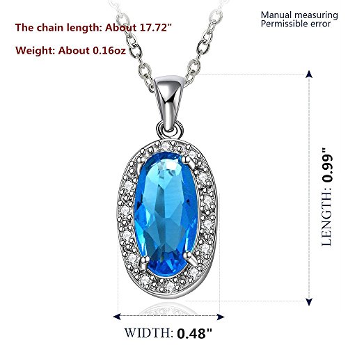 iCAREu Platinum Plated Oval Baby Blue Zircon Necklace, Stud Earrings Sets for Women,Girls, 18"