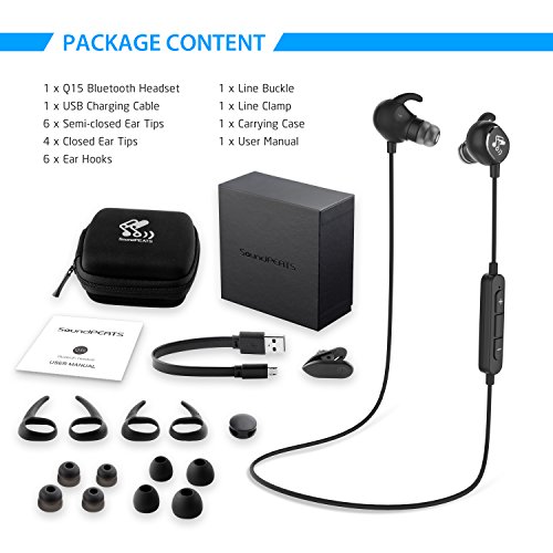 Title : SoundPEATS Bluetooth Headphones In-Ear Sports Earbuds Secure Fit Wireless Earphones with Mic (6 Hours Play Time, Bluetooth 4.1, aptX, Sweatproof) - Q15 Black