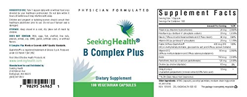 -. Binding : Health and Beauty -. Brand : Seeking Health -. EAN : 0828054134416 -. Feature : IMPORTANT: B Complex Plus is manufactured for and sold exclusively by Seeking Health. We DO NOT recommend purchasing this product from any supplier other than Seeking Health on Amazon.com. / Contains active forms of B vitamins plus L-5-MTHF / With natural shilajit extract to help support nutrient absorption and utilization / May help support neurotransmitter production and a healthy nervous system / May help support healthy liver function and metabolism -. IsAdultProduct : 0 -. Label : Seeking Health -. LegalDisclaimer : *These statements have not been evaluated by the FDA. This product is not intended to diagnose, treat, cure, or prevent any disease -. Manufacturer : Seeking Health -. Model : 023-05-001-20 -. MPN : BCOM-100-CAPS -. PackageQuantity : 1 -. PartNumber : BCOM-100-CAPS -. ProductGroup : Health and Beauty -. ProductTypeName : HEALTH_PERSONAL_CARE -. Publisher : Seeking Health -. Studio : Seeking Health -. Title : B Complex Plus | Bioavailable, Well-Tolerated Forms Of B Complex Vitamins | 100 Easy-To-Swallow Vegetarian Capsules | Physician Formulated | Seeking Health -. UPC : 798295549631