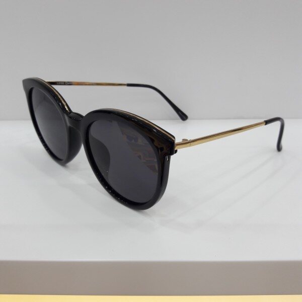 룩옵티컬 전용 선글라스입니다. 블랙테에 금장다리가 고급스럽습니다. 렌즈칼라는 블랙입니다.