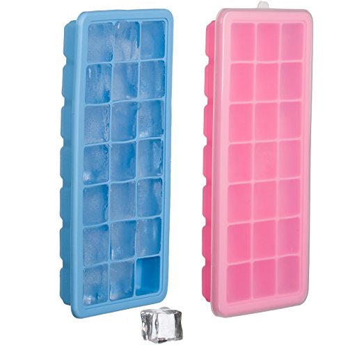 ❄ MAKE THE PERFECT SIZE ICE CUBE BLOCKS – The MHR silicon ice tray with lids features 21 cube holes to create perfect sized ice cubes and mini popsicles, not too small where the ice will melt easily, and not too big that is difficult to fit in some glasses, Each ice maker tray comes with a - PLASTIC LID COVER - so water doesn’t spill and ice your freezer and keeps your ices clean and odor free.