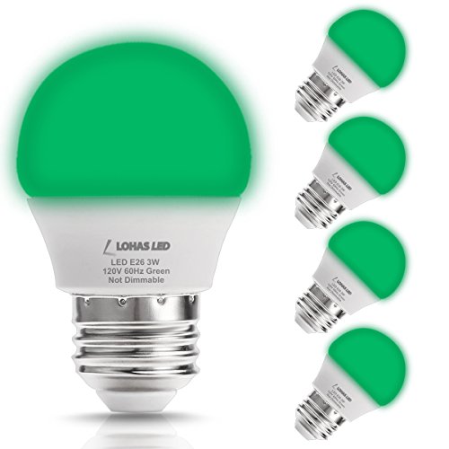 LOHAS Green LED Christmas Light Bulbs, 3W G14 LED Bulb For 25W Equivalent, E26 Medium Screw Base, Energy Saving Light Bulbs for Party Light Holiday Lights (Pack of 4)