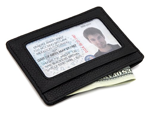 -. Title : RFID Blocking Wallet - Genuine Leather Mens Minimalist Wallet with ID Window