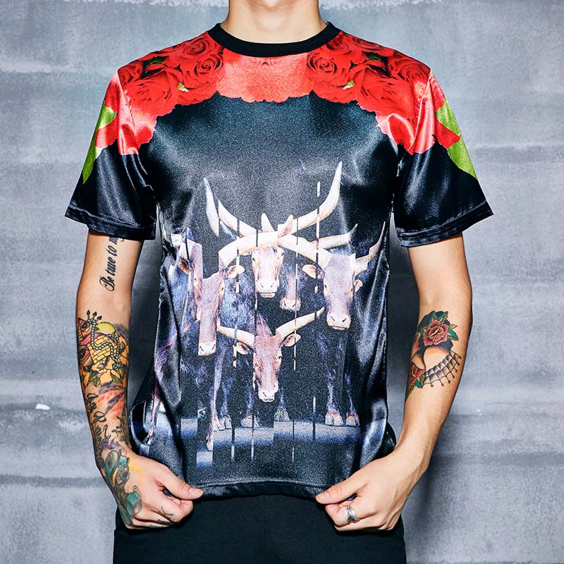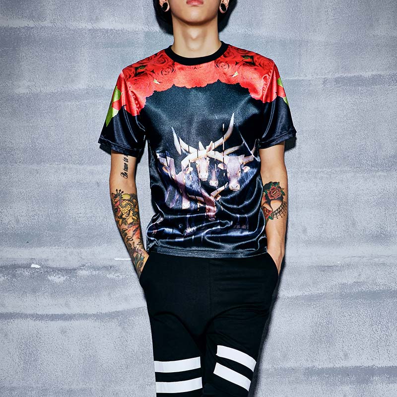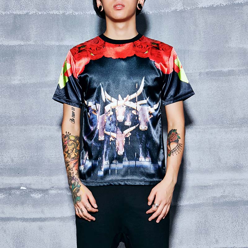 T-shirt is the same as pictures, Men Women both can wear. (Front is glossy rayon!)