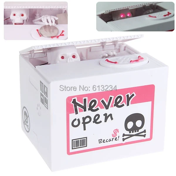 Free Shipping 1Piece Ghost Money Box Skull Piggy Bank Skeleton Coin Bank Black & White