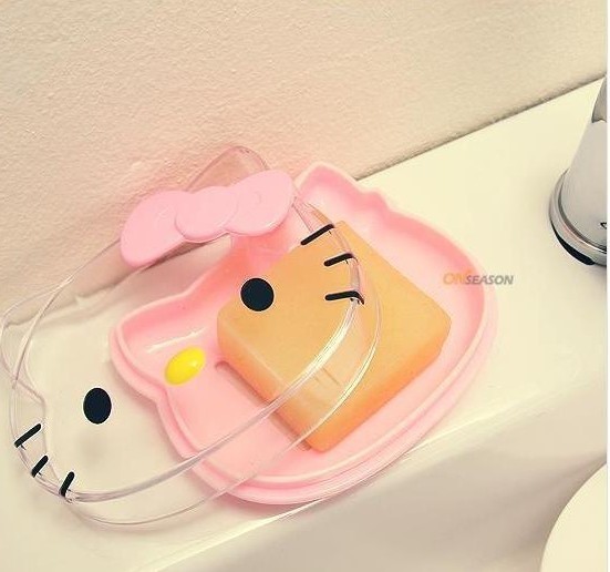 HELLO KITTY猫粉色蝴蝶结透明塑料盖皂盒