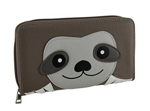 Studio : Zeckos Publisher : Zeckos Product Description Fun, stylish and spacious, this eye-catching wallet is fun to carry, even if you don't love sloths; who could deny that adorable face! This wallet will keep your things organized with 12 card slots, 4 bill slots, a checkbook sleeve (if you still carry one, otherwise it's great for coupons, receipts or a cell phone), and a zippered pocket inside with one on the back for your convenience. The exterior is lightly padded with sewn on details, and it easily zips closed with a wrap around zipper. It's roomy enough to carry just the essentials, large enough to carry as a clutch, and a perfectly fun way to carry your things. 0