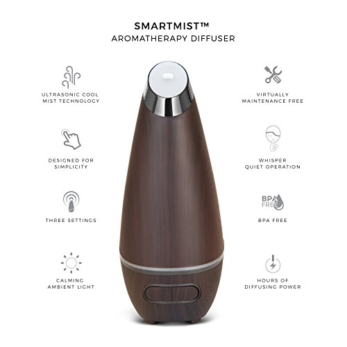 The SmartMist Aromatherapy Diffuser combines modern design, exceptional efficacy, and cutting-edge technology to disperse essential oils in their purest form through a cold evaporation process. Patented design helps purify and humidify the air with an ultra-fine, yet substantial mist output, releasing the aromatic benefits of essential oils quickly and safely.