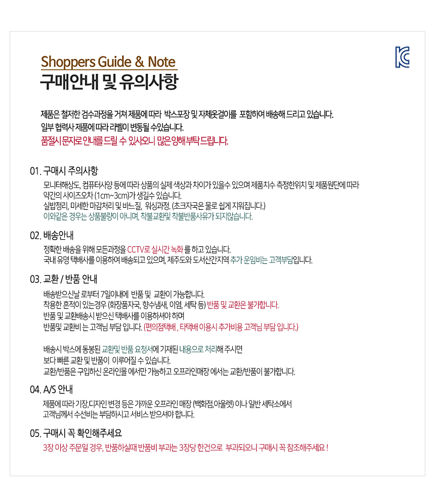 특이 사항 배송, 변경, 반품 환불에 대한 문의는 위 연락처로 문의 주세요.