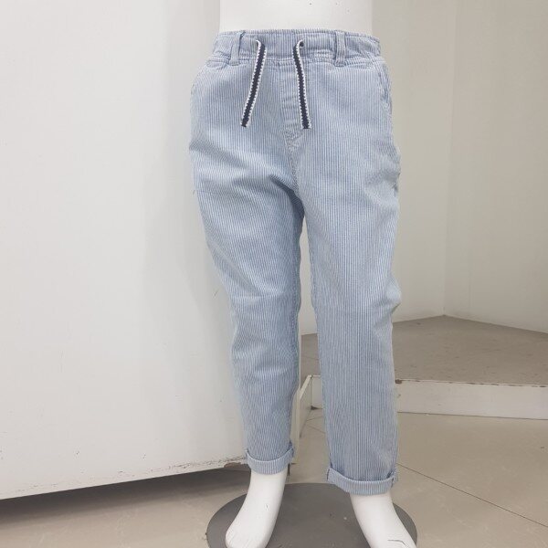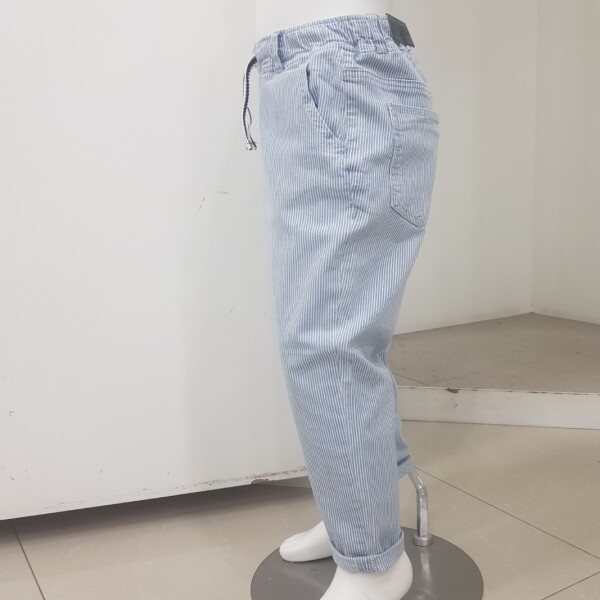 2019년 S/S 신상.남아 L톤 스트라이프 스트링 테이퍼드핏 데님팬츠 입니다.시원한 느낌의 스트라이프 소재의 깔끔하고 베이직한 스타일로 오비 스트링으로 포인트를 주어 스트릿한 감성을 더한 디자인 입니다. 성인바지의 배기팬츠 느낌이 있는 데님팬츠 입니다.