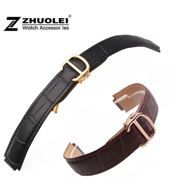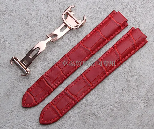 | [해외] 18 미리메터 (11 미리메터 시계 러그) 높은 품질의 레드 브라운 정품 가죽 시계 밴드 스트랩 골드 배포 버클 걸쇠 까르띠에 손목 |