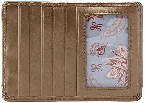 Take this Vintage Euro Slide Card Holder Wallet from Hobo to-go. The minimalist design is perfect for the woman who doesn't have time to fumble around with those larger wallets or one just looking to head to the store real quick. The genuine leather exterior features 5 credit card slots, a zip pocket, a slip pocket, and ID window. Measures 5.5" x 4" x 0.25".Feature