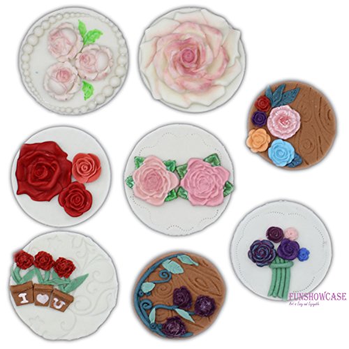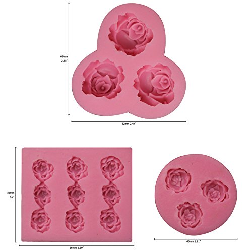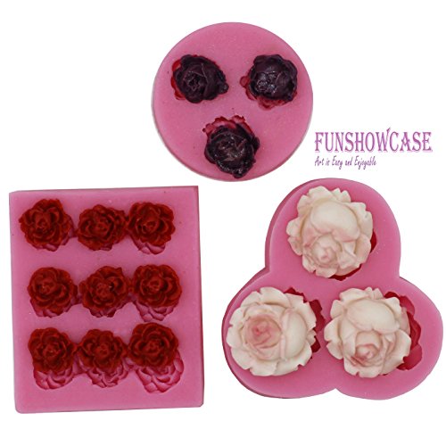 Funshowcase Mini Sizes Roses Collection Fondant Candy Silicone Mold for Sugarcraft Cake Decoration, Cupcake Topper, Polymer Clay, Soap Wax Making Decoration, Crafting Projects, 3 Count