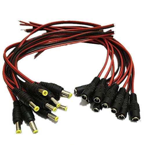 Ltvystore 10Pack 2.1 x 5.5mm DC Power Pigtail Female + 10Pack 2.1 x 5.5mm DC Power Pigtail MALE for CCTV Security Camera